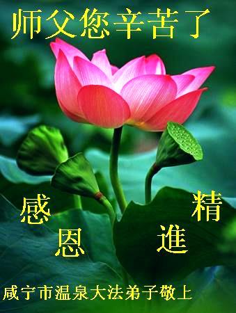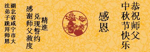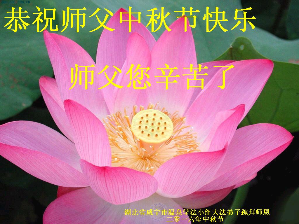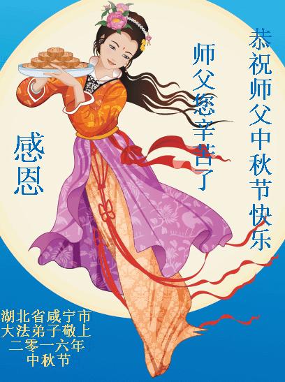 慈悲偉大的師父:中秋節來臨之際,咸寧市中心城大法弟子非常想念師父,感恩師父的慈悲救度,我們真誠的敬祝師父中秋節快樂!