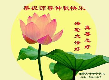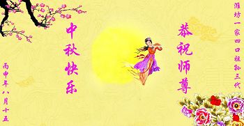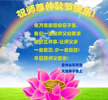 山東濰坊青州市大法弟子恭祝師尊中秋節快樂!在此叩謝師尊的慈悲苦度,弟子們唯有精進以謝師恩。