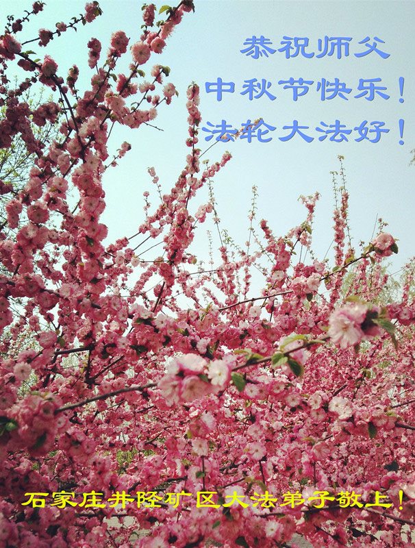 在中秋佳節到來之際,河北石家莊井陘礦區全體大法弟子恭祝師父中秋節快樂!弟子一定走好今後的正法之路,做好三件事,跟師尊回家!