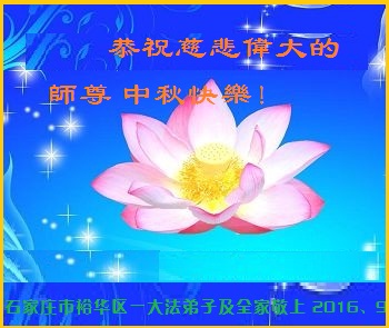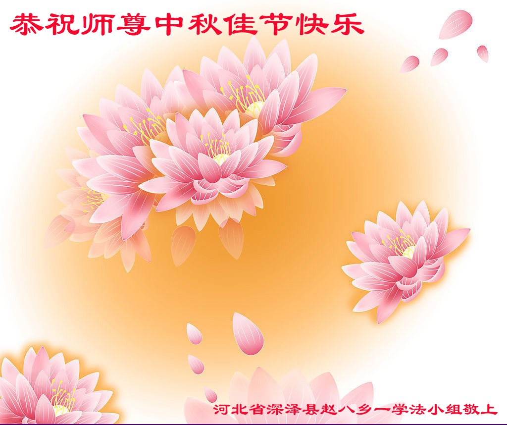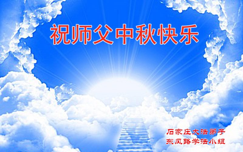 河北省石家莊市一學法小組全體大法弟子向慈悲偉大的師尊致以崇高的敬意!衷心恭祝慈悲偉大的師尊中秋佳節快樂!