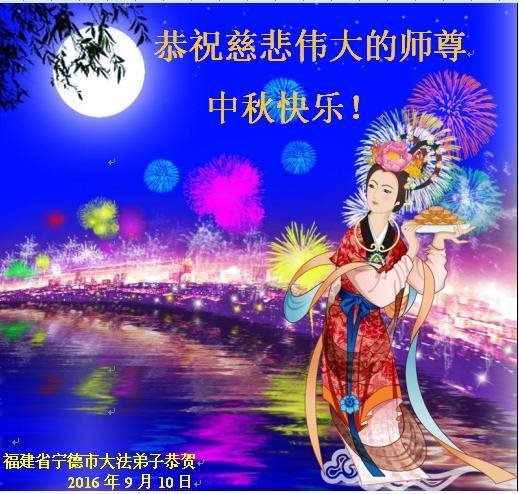 師尊您好!師尊您辛苦了!福建省寧德市全體大法弟子感謝師尊的慈悲苦度,全體弟子跪拜師尊,衷心祝願慈悲偉大的師尊中秋佳節快樂!