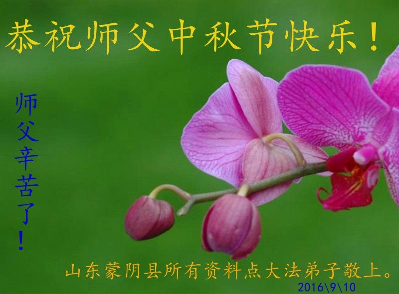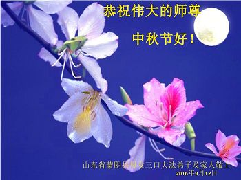 師父您好您辛苦了 在此中秋佳節之際,臨沂大法弟子恭祝遠在大洋彼岸的師父中秋節快樂!弟子一定謹遵師父教誨努力做好三件事,救度更多人。