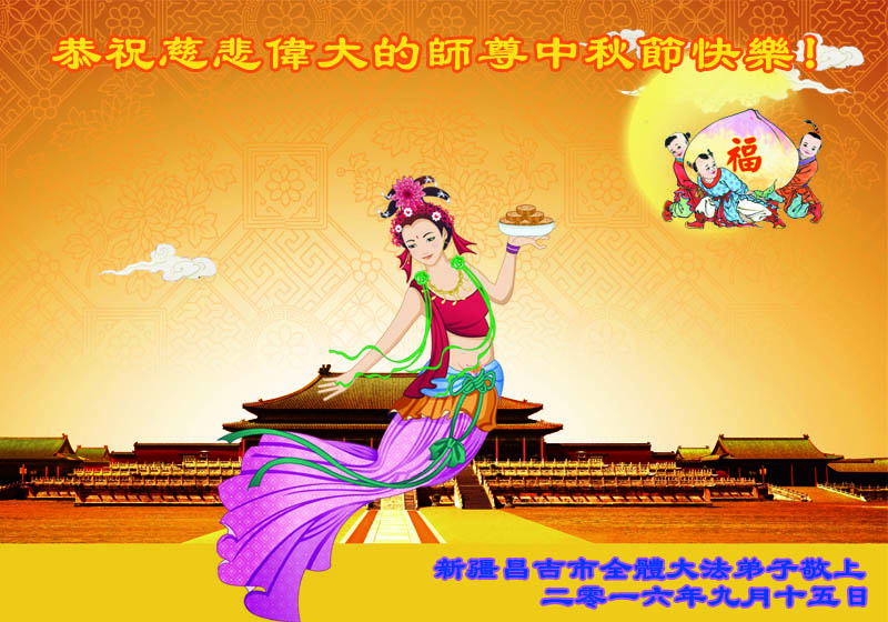 師尊您好!師尊您辛苦了!弟子們感恩師尊的慈悲救度!弟子們無以為報,只能在心中默默的恭祝師尊中秋節好!師尊為弟子們的承受弟子們是知道的,弟子們感恩師尊的心用盡全大穹的語言也無法表達。雖然弟子們現在很艱辛,但弟子們會笑對世人與眾生,用師尊恩賜的一切能力救度他們,共同迎接普天同慶的到來。弟子們再一次恭祝師尊中秋節好!弟子叩拜恩師!