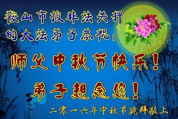 中秋佳節倍思親,弟子非常想念師尊,時刻感受到師父的慈悲呵護。弟子一定聽師父的話,走好最後的路,圓滿隨師還。弟子代表被非法關押在看守所的大法弟子,恭祝師尊中秋節快樂!