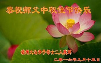 遼寧錦州大法弟子祝師尊中秋快樂!錦州弟子一定會完成大法弟子的使命,修好自己,救度這裏的一方眾生。弟子們也會謹記師尊的教誨「中秋添正念」。
