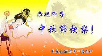 吉林省長春大法弟子一家三口恭祝師尊中秋節快樂!