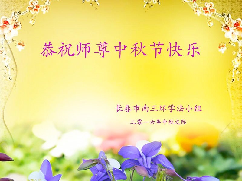 在中秋節到了之際我們長春大法弟子向慈悲偉大的師尊問候!祝師尊節日快樂!請師尊放心我們一定會按照師尊的要求好好修煉。用我們的實際行動修好自己多救眾生證實大法,來回報師尊對我們的慈悲苦度。