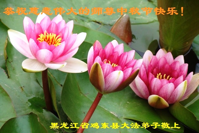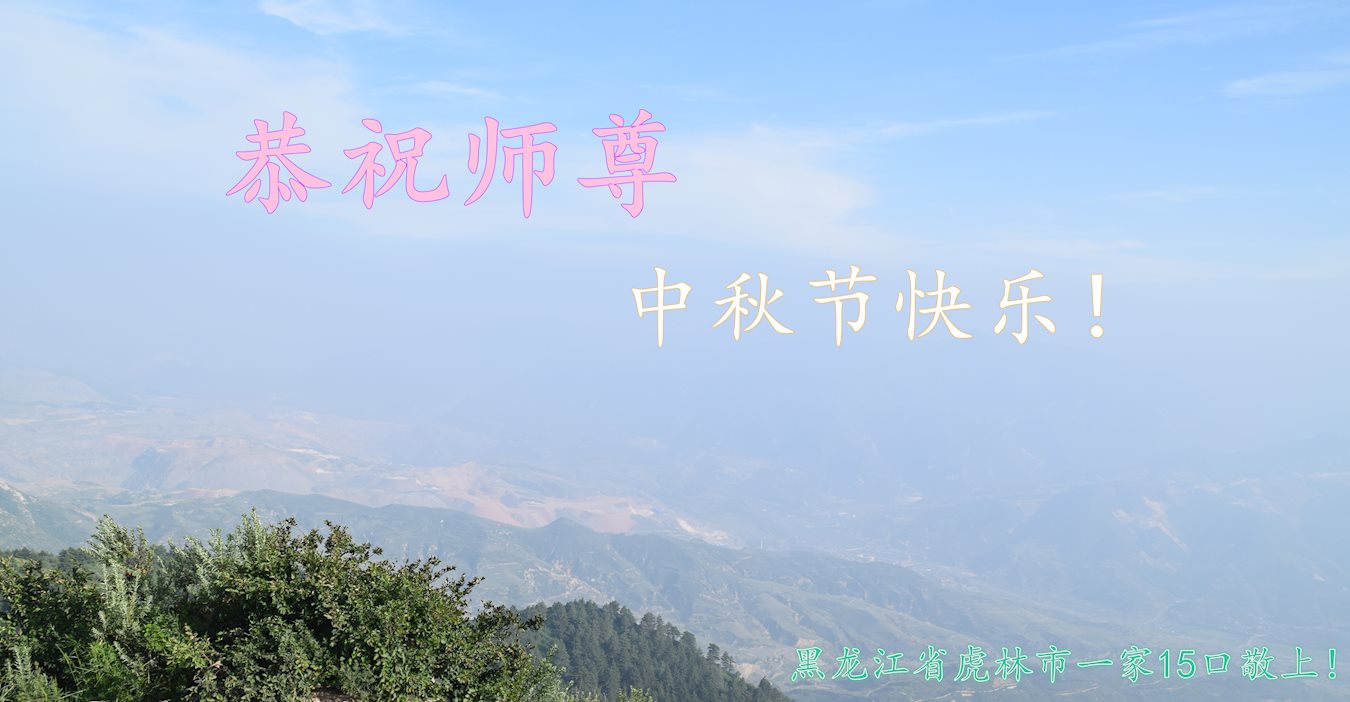 中秋節到了,在此我們黑龍江省密山市大法弟子,向偉大的師尊問候!師尊您好!您辛苦了!您經歷艱難,把大法的福音撒滿天地間。您力挽狂瀾拯救蒼穹在壞滅的一瞬間。您諄諄教導,教我們在助師正法中走過魔難。您帶領眾生,走向光輝美好的新世紀。