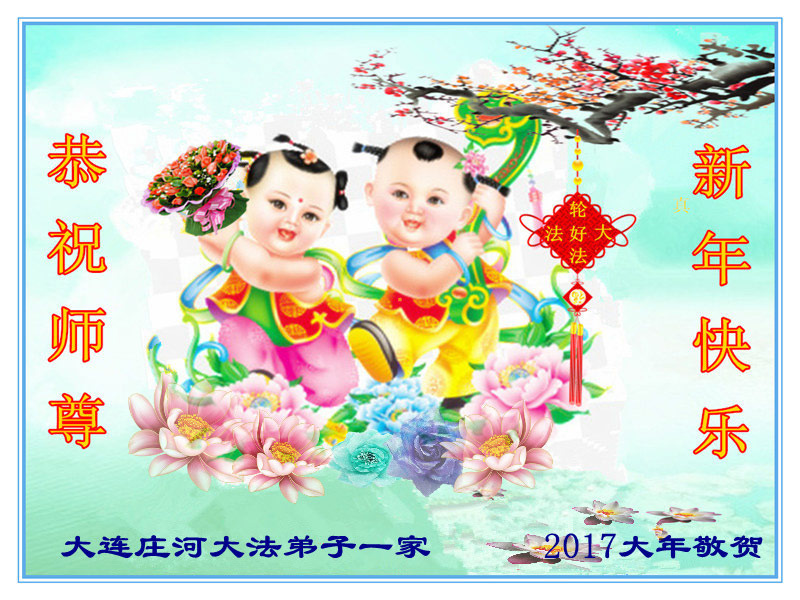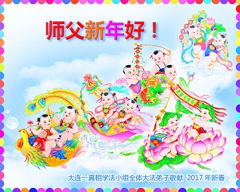 慈悲的師尊啊,我們大陸大法弟子時時刻刻想念您!值新年之際,遙祝師尊新年快樂!回顧走過修煉的路感慨萬千。是您,偉大的師尊牽著弟子們的手,拖著、拽著走到今天,在這混世中,使我們找到了回歸的路;是您,偉大的師尊為弟子承受著太多太多,使我們闖過一難又一難,一關又一關……弟子很慚愧,做的很不好,距師尊與大法的要求相差甚遠,讓師尊操盡了心。但是我們有決心:在師尊為我們延續來的最後時光裏,一定多學法,使自己溶入法中,用法指導自己的一切行動,多救人,抓緊時間實修,不辜負師尊的慈悲苦度,用實際行動感恩師尊。跟上正法進程,無愧大法弟子稱呼,圓滿隨師歸。弟子叩拜師尊!