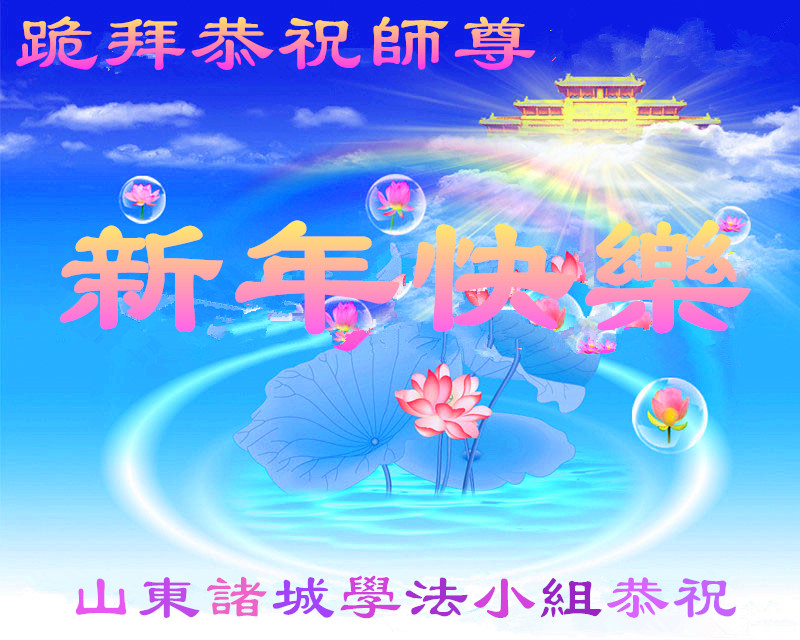 山東濰坊諸城一大法弟子恭祝慈悲偉大的師尊:新年快樂!