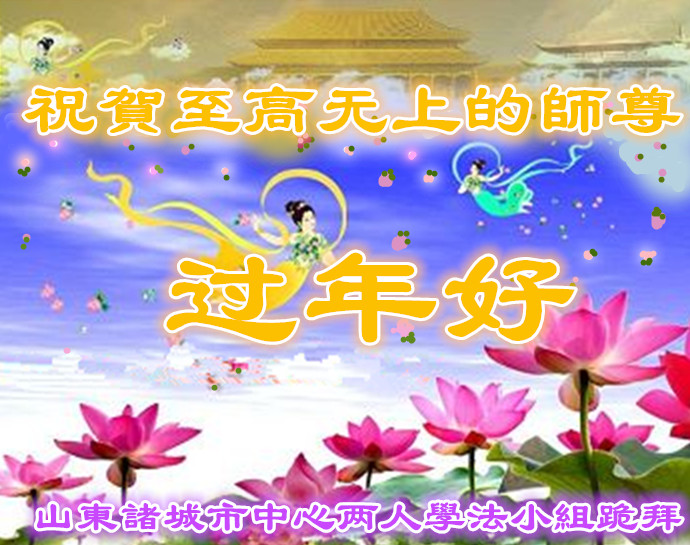 山東濰坊諸城兩人學法小組大法弟子虔誠的恭祝慈悲偉大的師尊:新年快樂!