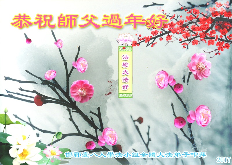 二零一七丁酉年新年來臨之際,北京海澱區成府路大法弟子向慈悲偉大的師尊致以最崇高的敬意!
