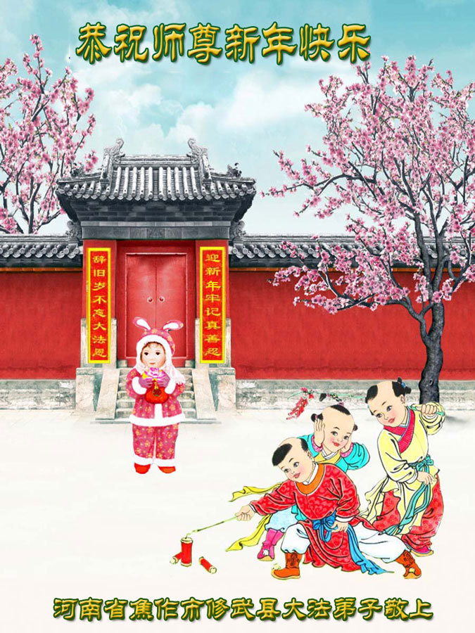 深圳南山區一大法弟子及家人四人,特別是小外孫女,一同恭祝慈悲、偉大的師尊新年快樂!
