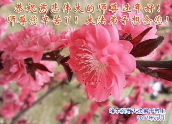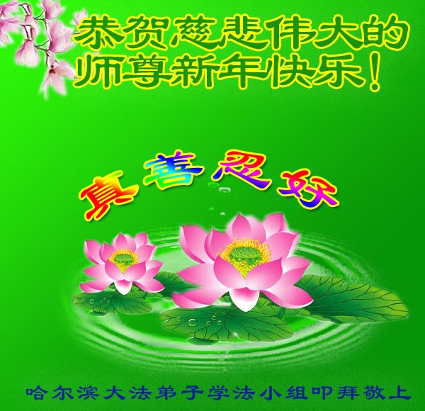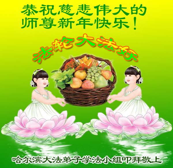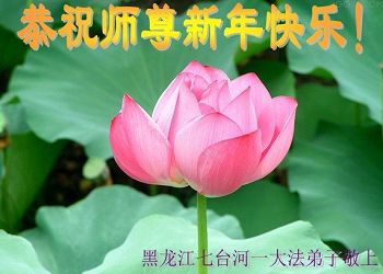 黑龍江七台河北岸新城一大法弟子恭祝慈悲偉大的師父新年快樂!謝謝師尊的慈悲苦度!