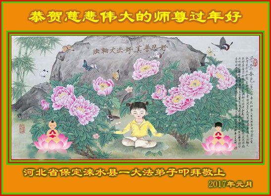 河北省保定市涿州雙塔區一學法小組大法弟子祝慈悲偉大的師尊過年好!給師尊拜年!祝師尊新年快樂!