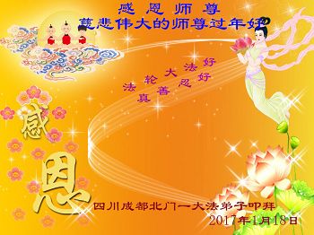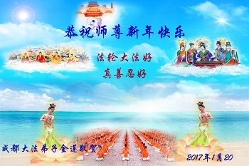 四川省成都市大法弟子恭祝慈悲偉大的師尊新年快樂!