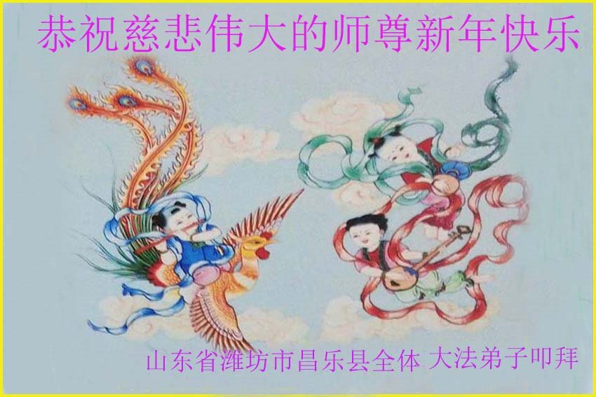 山東省濰坊市寒亭區開元街辦楊孟、張氏、寨裏、安固等村莊的全體大法弟子向偉大的師尊拜年!跪拜師尊過年好!謝謝師父,師父您辛苦了!