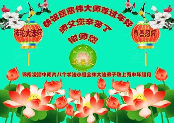 在新的一年裏,凌海市一學法小組大法弟子獻上弟子純潔的一片心,用最美好的祝願恭祝慈悲偉大的師父過年好!師父您為眾生受苦了,感謝師父的慈悲苦度!我們會維護好這個集體學法的環境,互相幫助,比學比修,聽師父的話,做好三件事,共同圓滿隨師還。