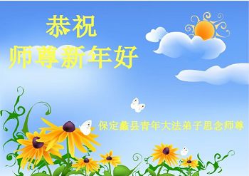 新年將至,河北淶水縣全體大法弟子給慈悲偉大的師父拜年!恭祝師父新年快樂!在新的一年裏,我們一定按師父的要求,精進實修,走好最後修煉的路。
