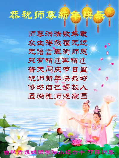 吉林市姐妹倆學法小組恭祝慈悲偉大的師尊新年快樂!