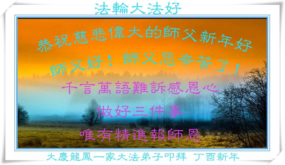 2017丁酉年即將來臨,大慶一家大法弟子叩首恭祝慈悲偉大的師尊過年好!