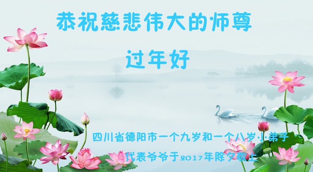 師尊您好:每逢佳節倍思親,在這皇曆新年到來之際,我們遙祝恩師新年快樂!在新的一年裏,我們要認真學法,修去人心,放下太多太強的執著,多救人。珍惜這萬古不遇的機緣,兌現自己的誓約。