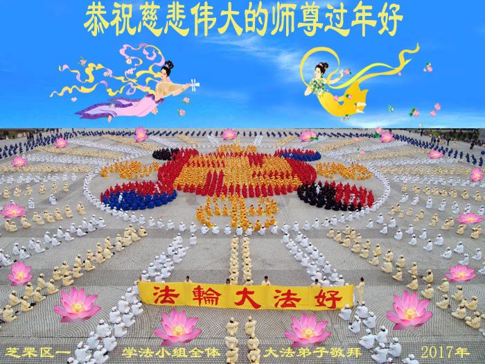 師父您好:在此我們學法小組全體大法弟子給您拜年了!感謝師父慈悲救度,師父您辛苦了,弟子們無以為報,唯有學好法,多救人,兌現誓約,同化大法,圓滿隨師還。