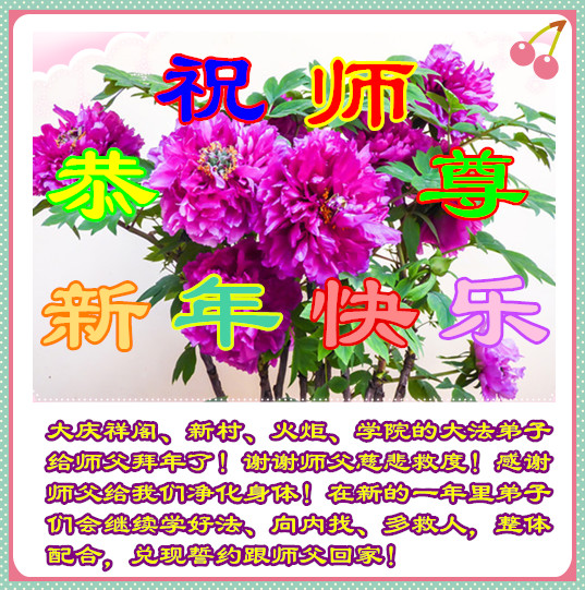 黑龍江省大慶祥閣、新村、火炬、學院的大法弟子恭祝慈悲偉大的師尊新年快樂!