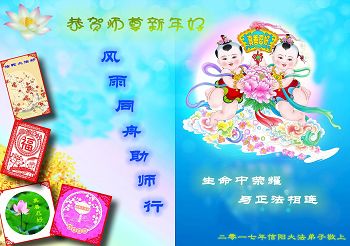 新年來臨,我代表全家人給師父拜年!師父沒有放棄不精進的弟子,在魔難中,我們誠念「法輪大法好,真善忍好」得了福報,身體恢復了健康。