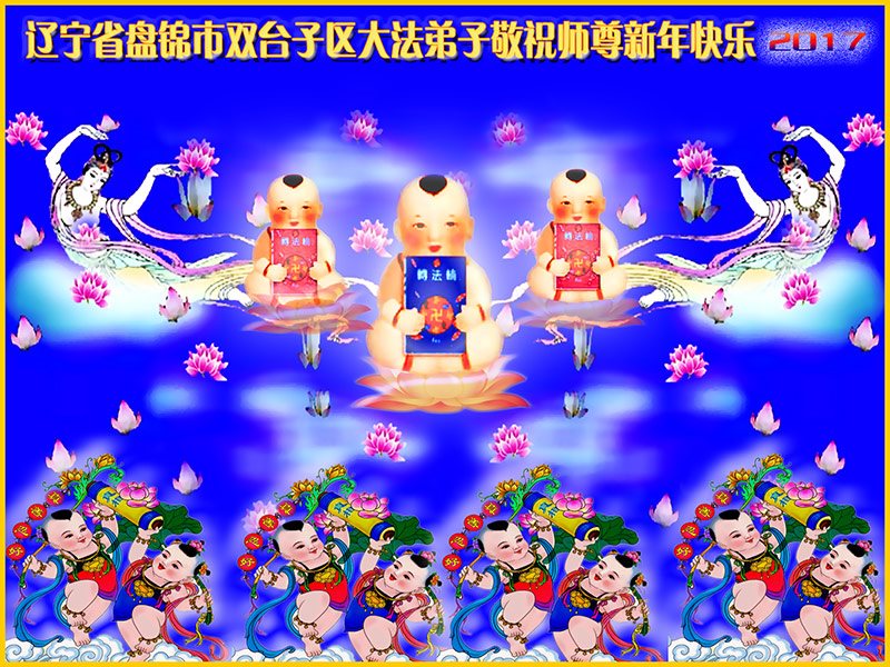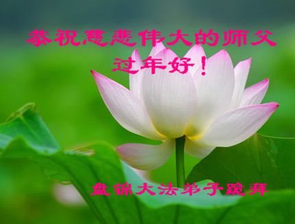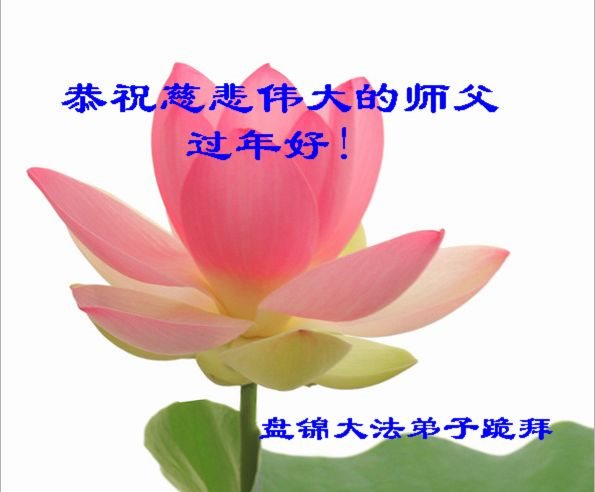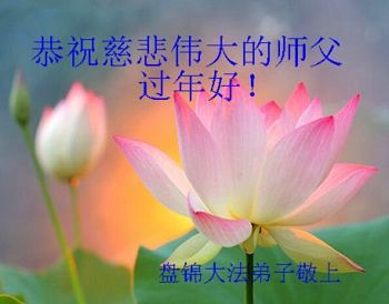 全體盤錦大法弟子恭祝慈悲偉大的師尊過年好!同時也恭祝師尊的家人過年好!請師尊多多保重。我們在新的一年裏,一定聽師尊的話,多學法,多救人。做好三件事,跟上正法進程,圓滿隨師還!