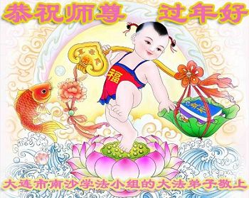 在中華民族的傳統節日除夕即將來臨之際,我們遼寧省大連市沙河口區南沙一學法小組的全體大法弟子恭祝慈悲偉大的師尊過年好!