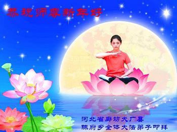 河北省廊坊大廠縣陳府鄉全體大法弟子恭祝師尊新年好!