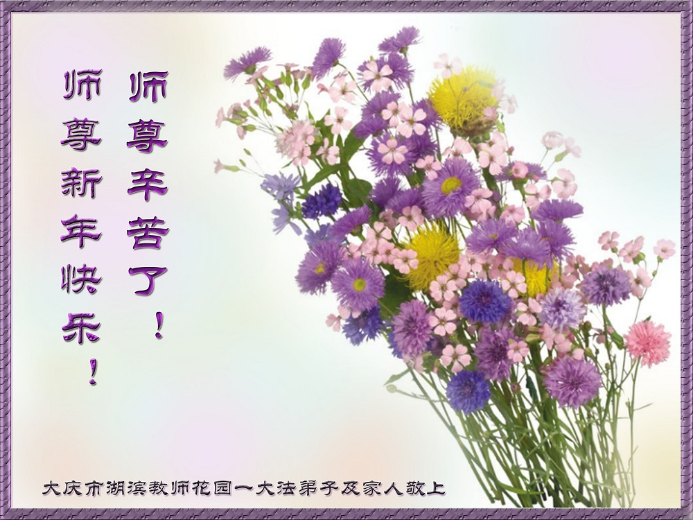 黑龍江省大慶湖濱教師花園一大法弟子及家人恭祝師尊新年快樂!師尊辛苦了!