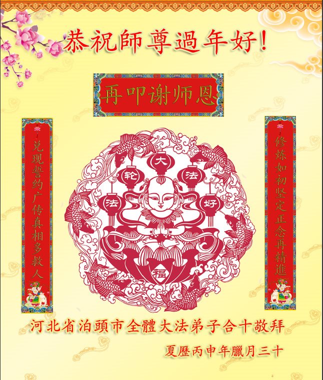 在中國傳統新年到來之際,邢台市橋東區一學法小組大法弟子恭祝師父新年快樂!給師尊拜年!