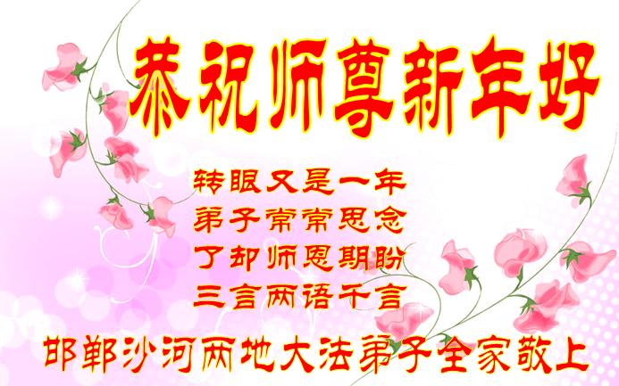 河北省石家莊深澤縣鐵桿鎮西河曈村全體大法弟子給師父拜年:恭祝師父新年快樂!謝謝師父為弟子費心。