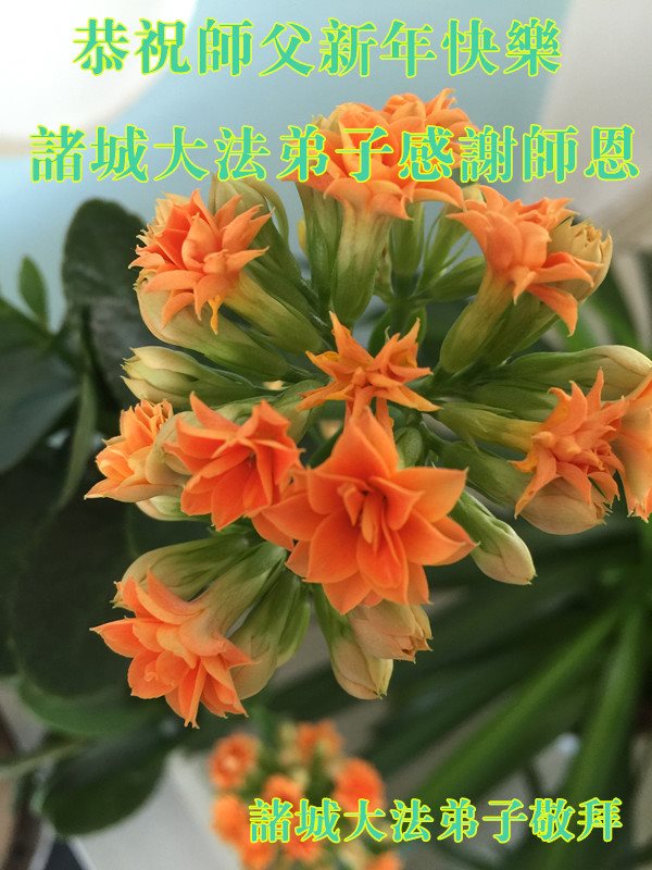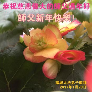 我們用任何語言都無法表達對師父的敬意和感恩。在新的一年裏,我們紮紮實實的修,時刻想到自己是煉功人,走師父安排的路,學好法多救人,讓師父少操心,多一些欣慰。我們集體遙祝師父新年快樂!