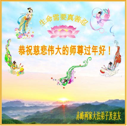 恭祝師尊過年好!弟子代表全家人感謝師尊慈悲的救度與保護!弟子跪拜師尊!同時代表學法小組老弟子祝師尊新年快樂!──得度