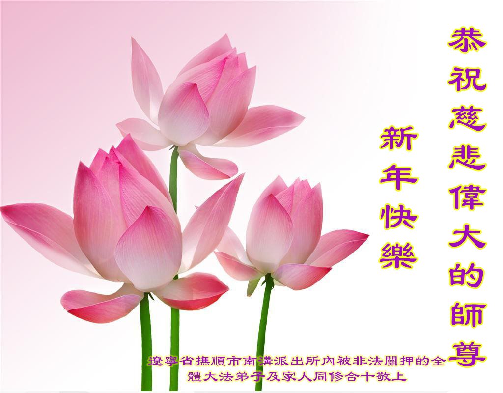 遼寧省撫順市被非法關押在南溝派出所的全體大法弟子及家人同修共同恭祝慈悲偉大的師尊新年快樂!希望弟子們在新的一年能夠更加精進,唯願師尊笑!