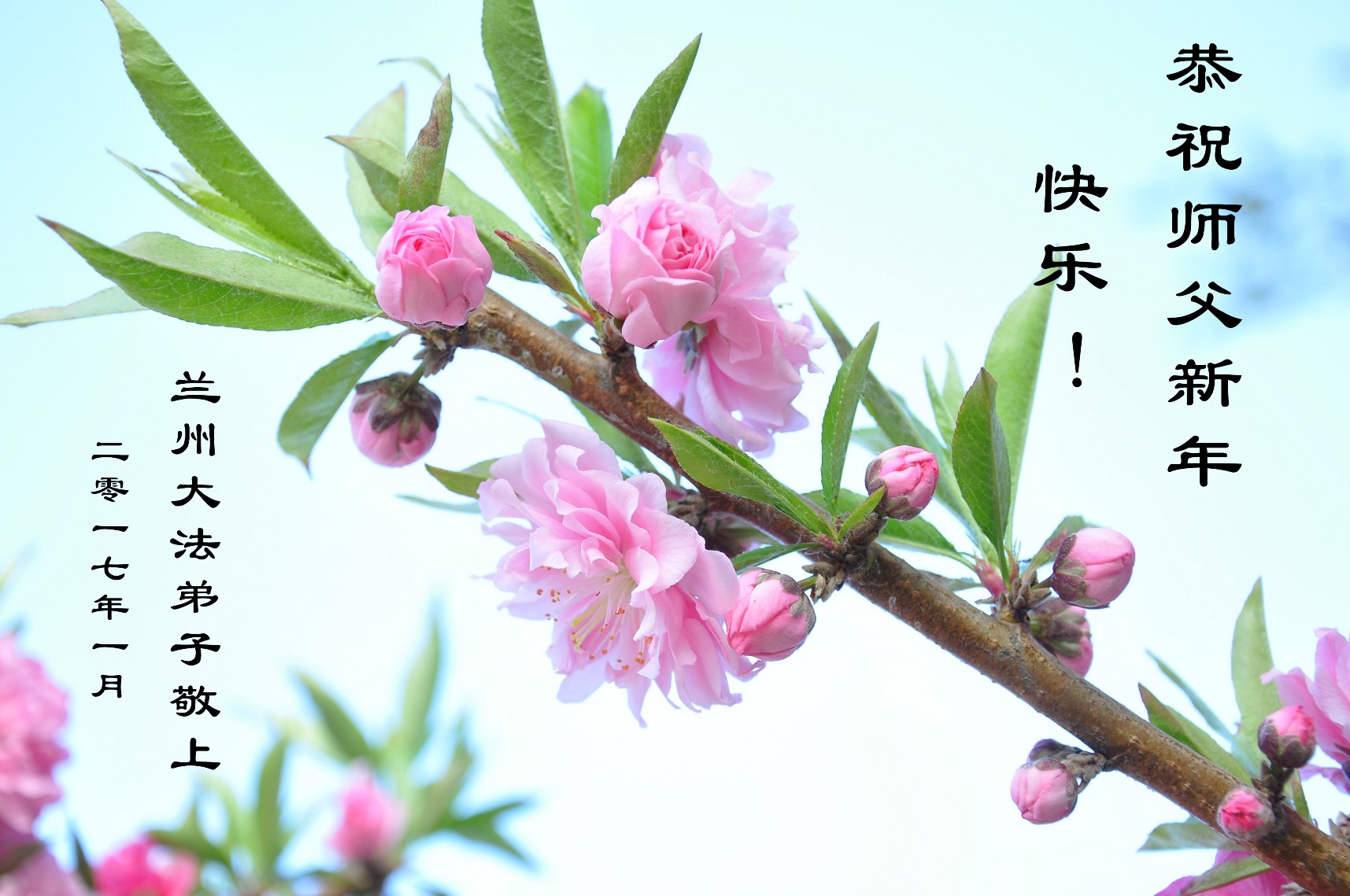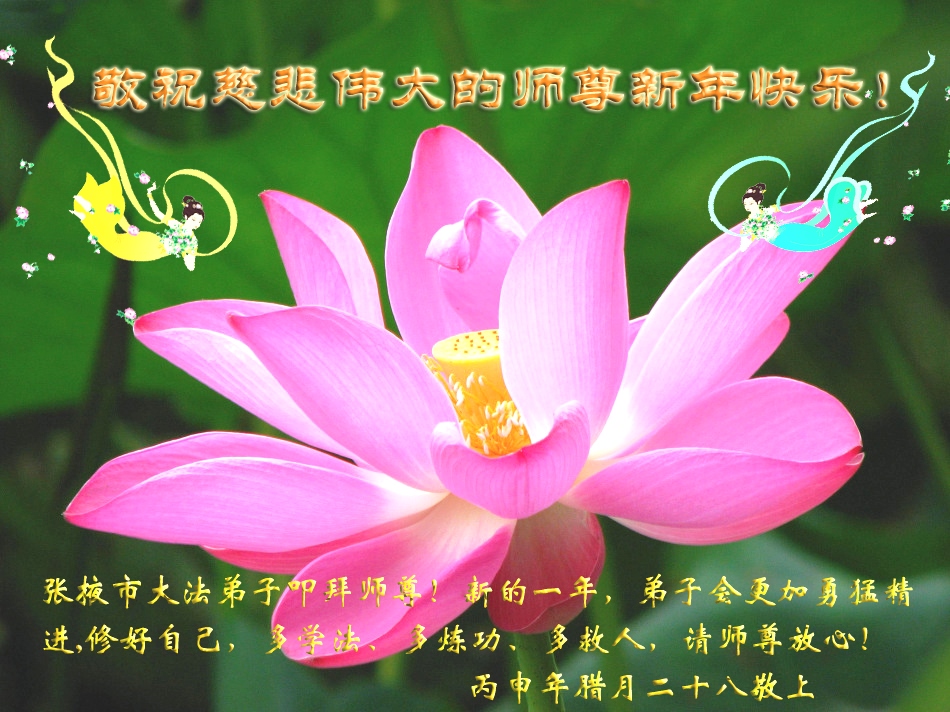 在2017年新年來臨之際,弟子們給師父拜年了,祝師父新年快樂!感謝師父的慈悲苦度,弟子們一定努力做好三件事,圓滿大法弟子的責任,開創更好的修煉環境,迎接師父早日回到中國。