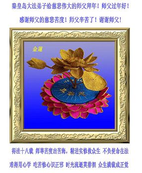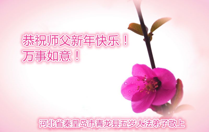 中國新年到了,秦皇島五名大法弟子給師父拜年,叩拜師父過年好!千言萬語無法表達對師父苦度我們的感激之心。只有做大法弟子該做的,該說的,三件事不能打折扣才是我們的使命。找回修煉如初,一定跟師父回家!