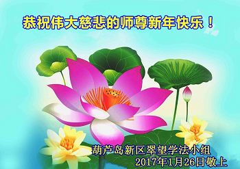 2017年新年到來之際,葫蘆島地區全體大法弟子給師尊拜年!恭祝師尊過年好!