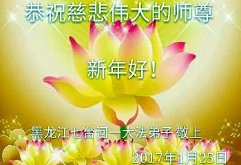 黑龍江牡丹江大法弟子家族所有成員恭祝師尊新年快樂!師父辛苦了。誠謝恩師的慈悲救度。叩謝師恩!家族中所有大法弟子一定珍惜時間,精進實修,多救人,做好三件事。做合格的大法弟子。