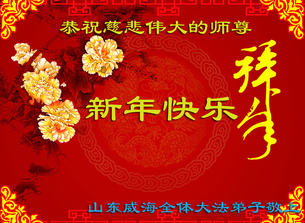 尊敬的慈悲偉大的師父:我們濰坊大法弟子一個學法小組問候師父過年好,謝謝師父給予我們的一切。我們一定在最後的時刻,修好自己,多救度眾生。兌現自己的使命。謝謝師父!
