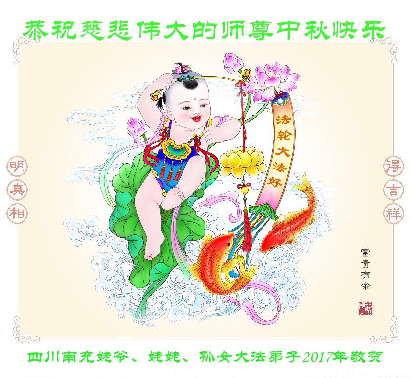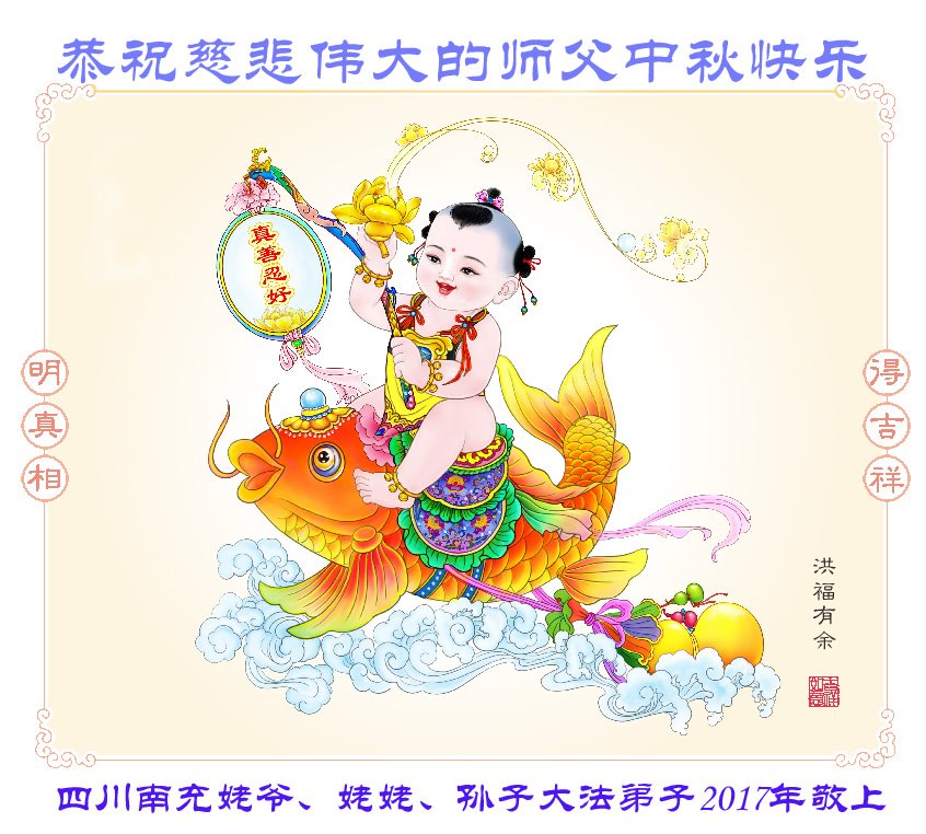 四川南充姥爺、姥姥、孫女三大法弟子恭祝慈悲偉大的師尊中秋快樂!