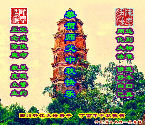 四川開江大法弟子敬賀慈悲偉大的師尊中秋快樂!