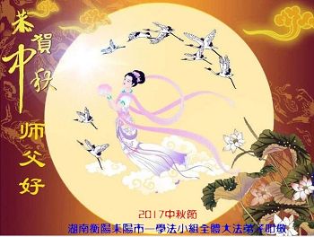 每逢佳節倍思親,中秋節是闔家團圓的日子,岳陽市全體大法弟子真心期盼能早日與慈悲偉大的師尊團圓!十八年的風風雨雨離不開師尊細細呵護,在這特別的日子裏我們更加思念師尊,感謝師尊慈悲救度之恩!我們一定謹遵師尊教誨,珍惜和師父的緣份,珍惜大法給我們留下的時間,完成大法賦予我們的歷史使命,圓容整體、真修、實修,做好三件事,走好走正最後的修煉路,兌現誓約,回報師尊無量慈悲!