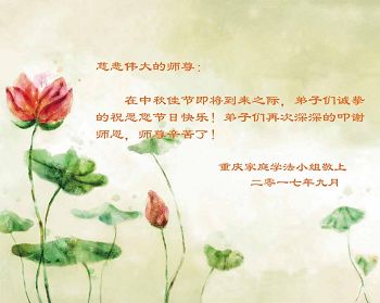在中秋佳節即將到來之際,弟子們誠摯的祝願您節日快樂!弟子們再次深深的叩謝師恩,師尊辛苦了!