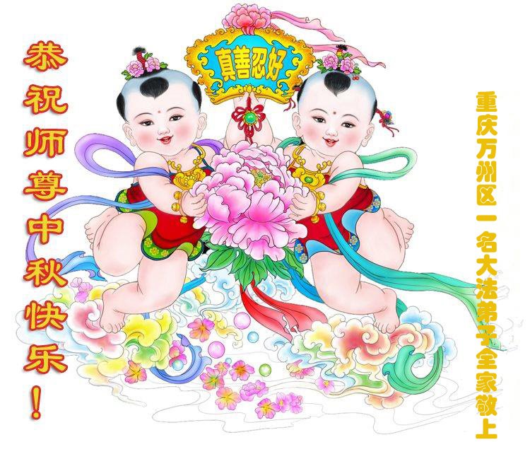 重慶萬州區一大法弟子全家恭祝師尊中秋快樂!