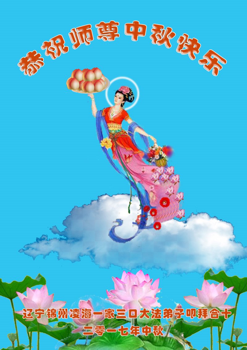 遼寧錦州凌海市一家大法弟子恭祝慈悲偉大的師尊中秋節快樂!
