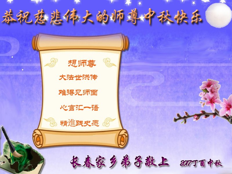 吉林省長春一大法弟子全家恭祝慈悲偉大的師尊中秋快樂!叩謝師尊慈悲苦度!